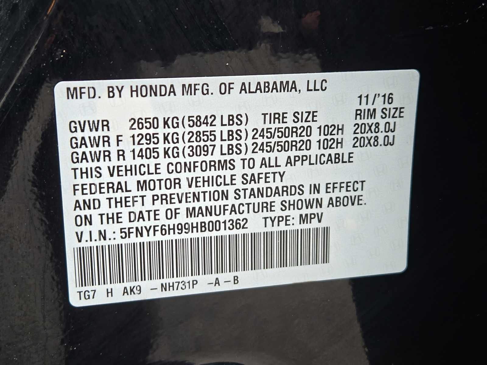 * 2017 IIHS Top Safety Pick+ (When equipped with Honda Sensing and specific headlights) * 2017 KBB.com Best Buy Awards * 2017 KBB.com 10 Best Certified Pre-Owned 3-Row SUVs Under $30,000 * 2017 KBB.com 12 Best Family Cars * 2017 KBB.com Brand Image Awards * 2017 KBB.com 10 Most Awarded Brands