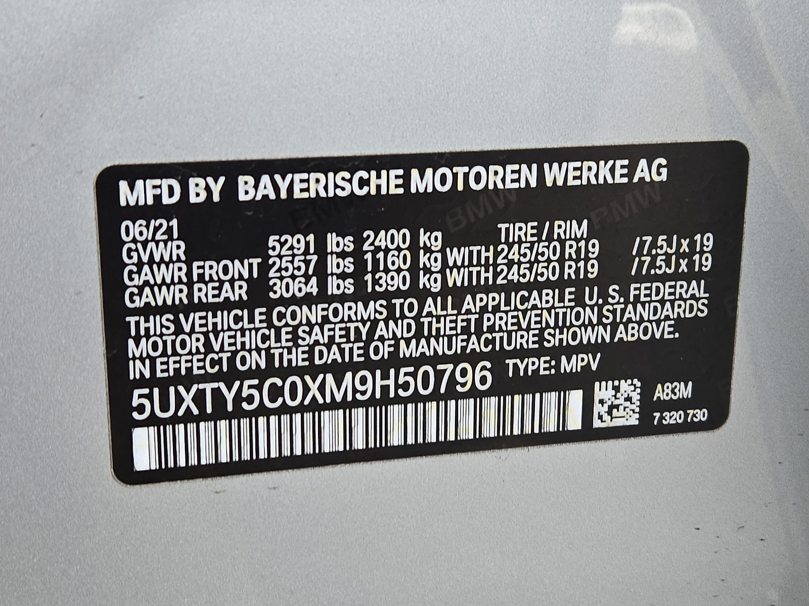 VIN 5UXTY5C0XM9H50796